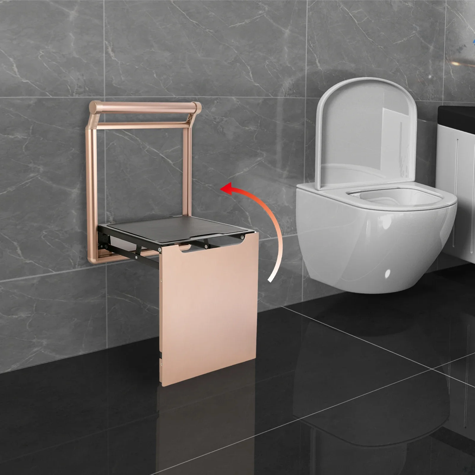 Folding Bathroom Stool, Wall-Mounted Shower Seat for Senior, Elderly, Pregnant, Disabled, Load 440.92 lbs Chic Home Furniture