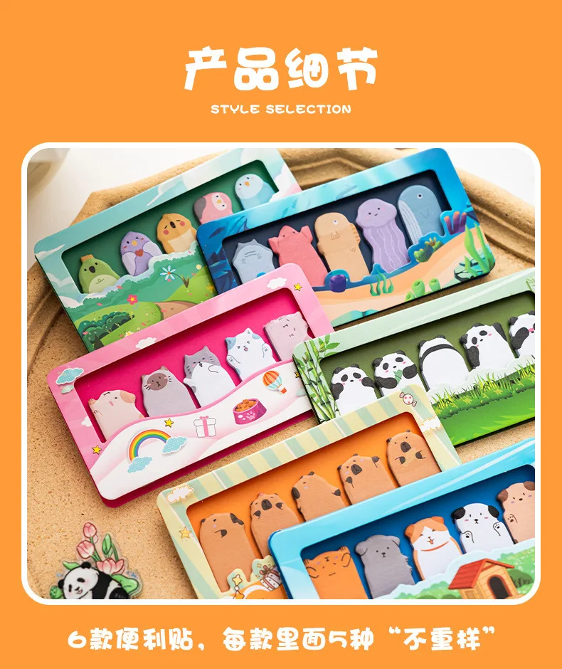 150sheets Kawaii Cartoon Animals Sticky Notes Memo Pad Bookmark Flags Index Tab Sticky Notes Label Paper Stickers Stationery