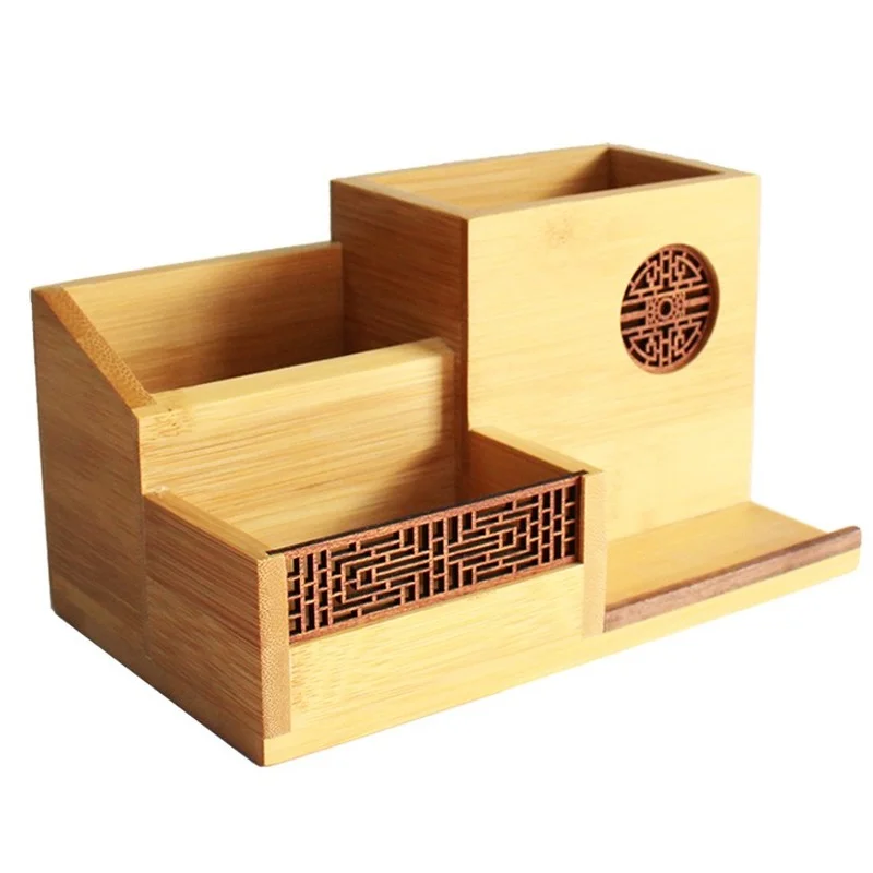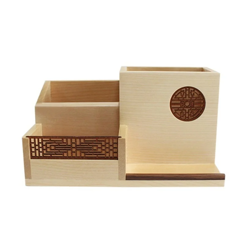 2022 Desktop Finishing Box Wooden Office Stationery Storage Box Pen Holder Creative Combination Multi-function Pen Holder
