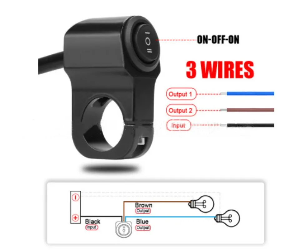 22mm 7/8in Aluminum Alloy Motorcycle Handlebar Headlight Switch Three-position Waterproof Switch 12V Fog Spotlight Retro Switch