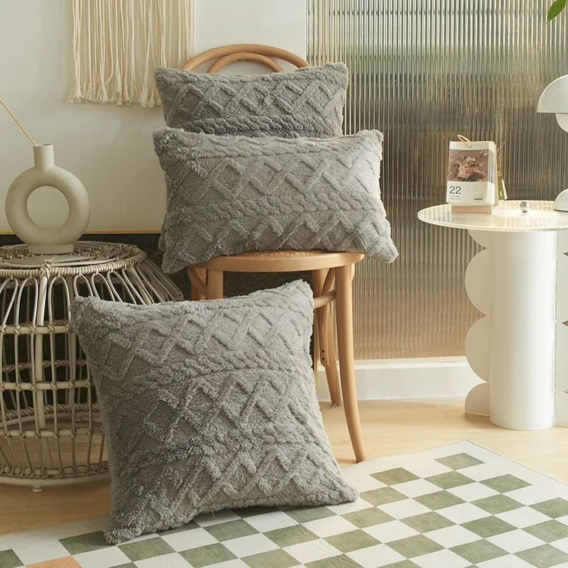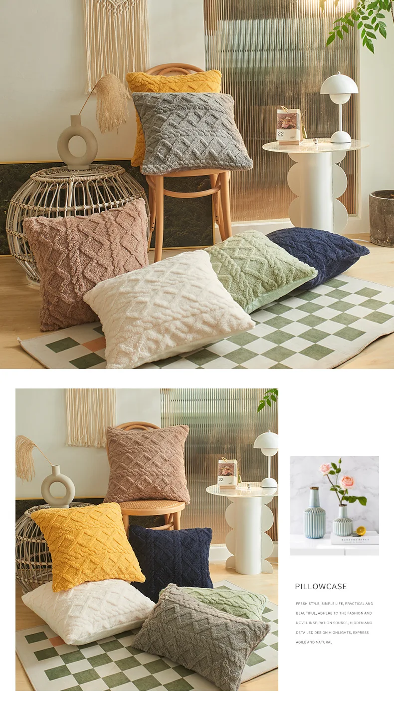 30*50cm/45*45cm Geometric Jacquard Plush Throw Pillow Covers for Couch Bed Sofa Farmhouse Neutral Solid Color Soft Cushion Cover