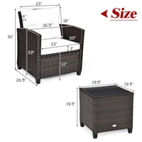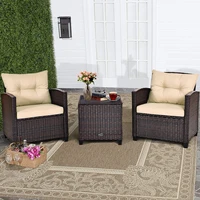 3PCS Patio Rattan Furniture Set Cushioned Conversation Set Sofa Coffee Table