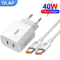 40W Dual USB C Charger Fast Charging QC3.0 PD Type C Fast Charger Adapter For iPhone Xiaomi Samsung Huawei Phone 10A USB C Cable