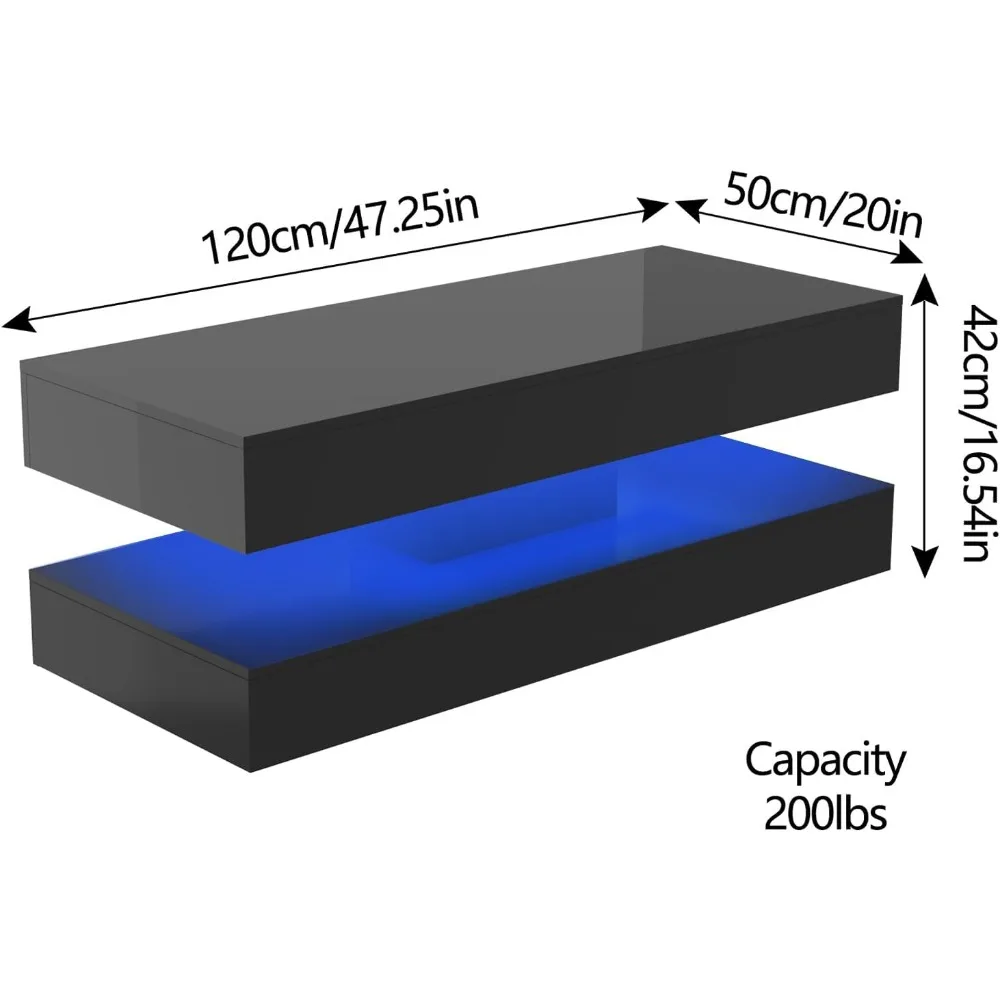 47.3IN High Glossy LED Coffee Table for Living, Living Room Tables, Large Living Room Furniture, APP LED Lights, Coffee Table