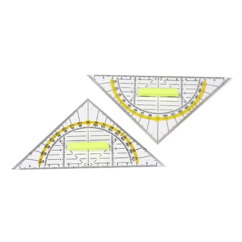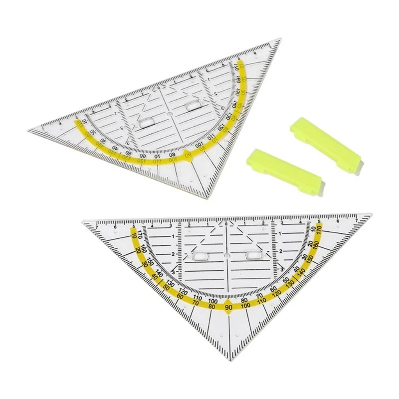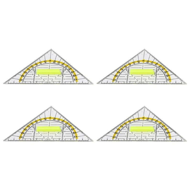 4pcs Versatile Measuring Triangle Ruler Plastic Transparent Rrotractor Shatterproof Office Maths School Set Protractor Ruler