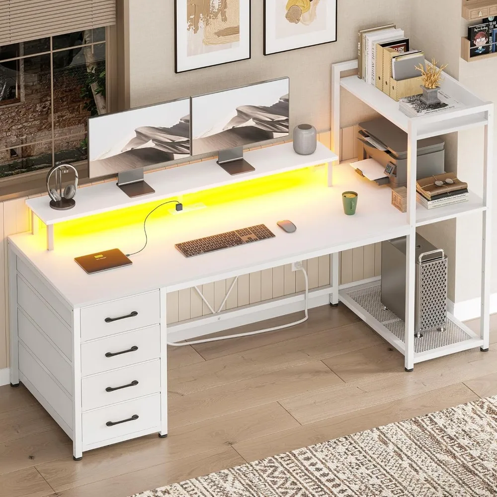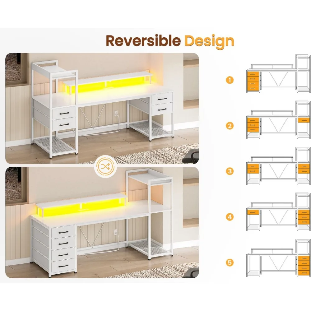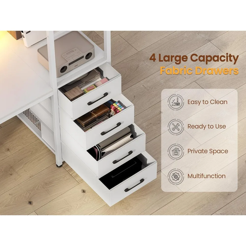 - 【Reversible Shelves and Drawers】The computer desk comes with 4 open shelves and 4 fabric drawers, providing you with ample storage space. Depending on your preference, you can fix the shelves or drawers on the left or right side. The drawers are removable, and the 2 storage shelves below can also be CPU stands.