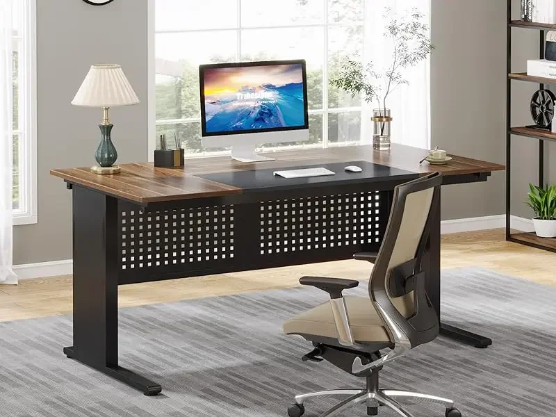 - LARGE WORKING SPACE: This larger office desk offers a spacious work area with a 63″ L large desktop and 31.5″ W width that can accommodate multiple monitors and laptops as well as any necessary work supplies. Moreover, with a height of 29.5″ and ample legroom, you can comfortably stretch your legs while working, gaming, writing, or engaging in any other home office activities.