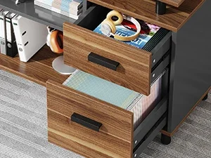 The 2 file drawers with full extension slides provide plenty of room to keep your files, letters, folders, office supplies organized.