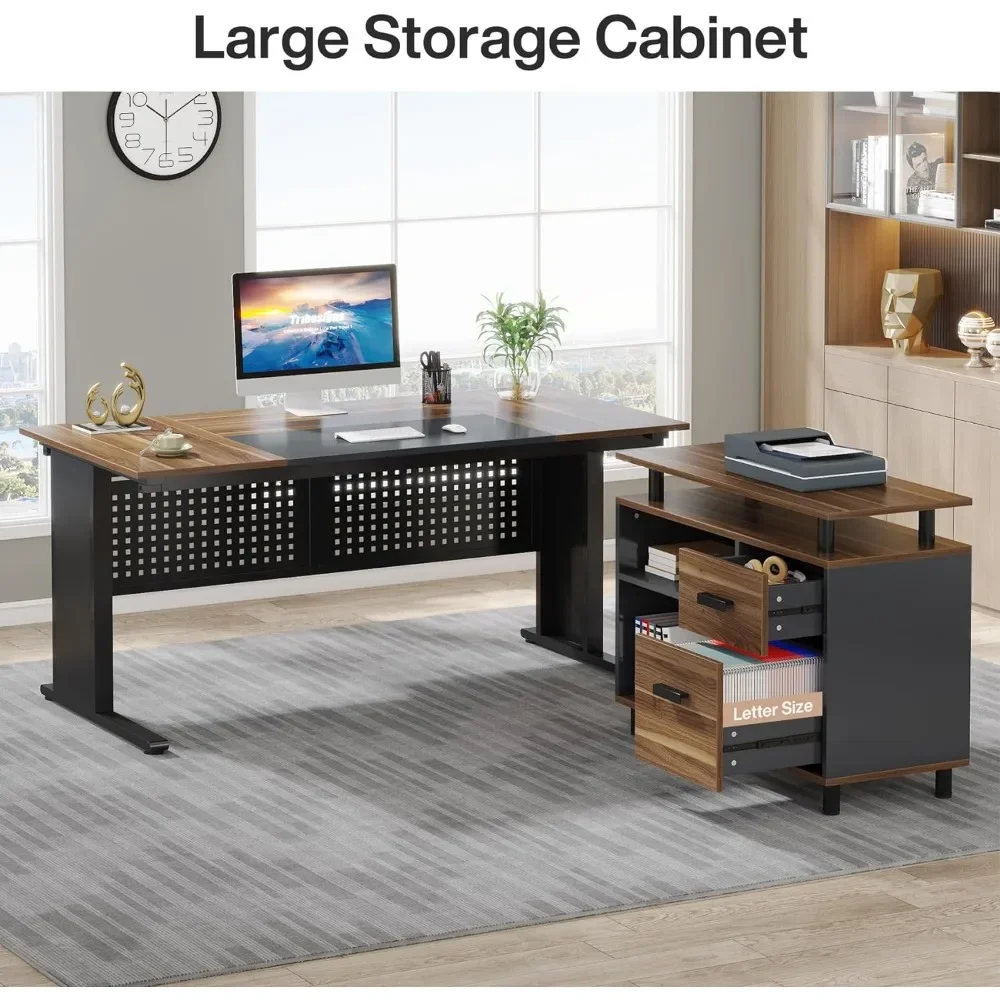 - MODERN L SHAPED DESK: With the combination of functional design and elegant grid design, this l shaped executive desk not only includes practical performance of modern furniture, but also adds a nice addition to your room. The decent and elegant appearance makes this office desk and filing cabinet look great in your space as a workstation.