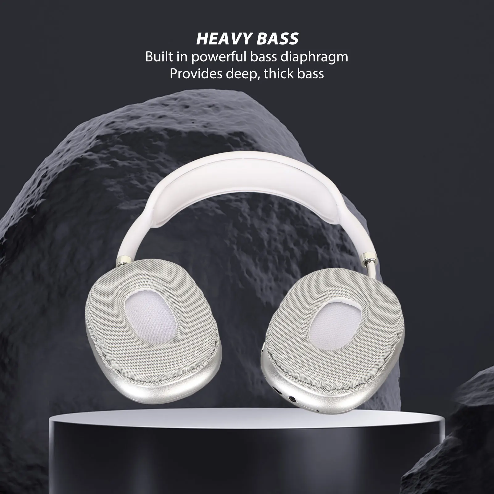 Bluetooth Headphone HiFi Bass Built in Mic Support Memory Card Wireless Headset for Running Travel White Over Ear Headphone