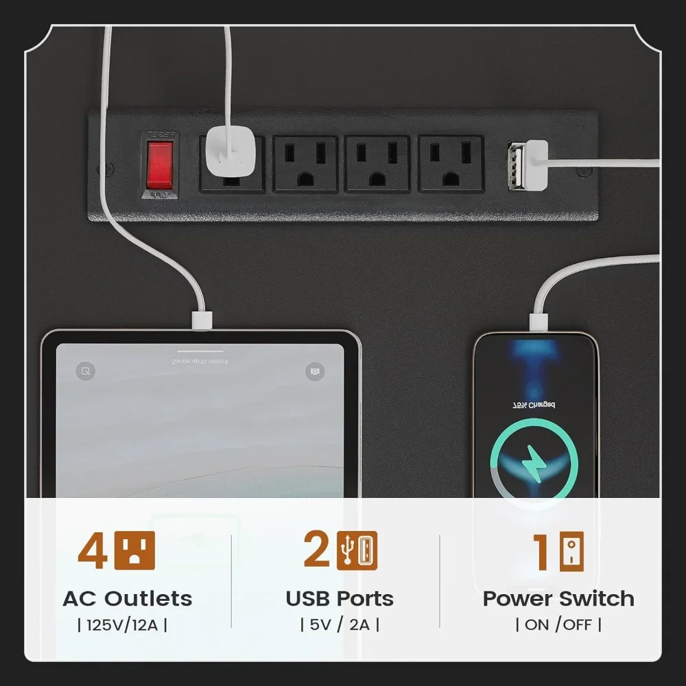 - 【Power Outlets】This executive L shape desk is equipped with 4 AC outlets, 2 USB charging ports to provides convenience for charging your gaming gear, tablet, printer or phone. The switch is convenient and safe to turn off power, no need to unplug appliances at all times.