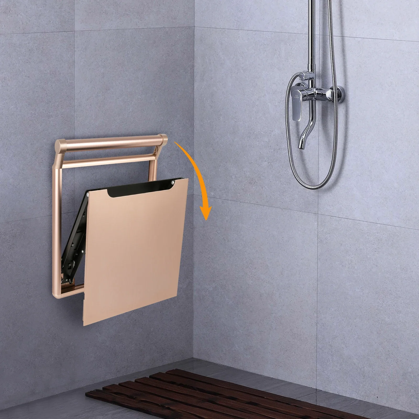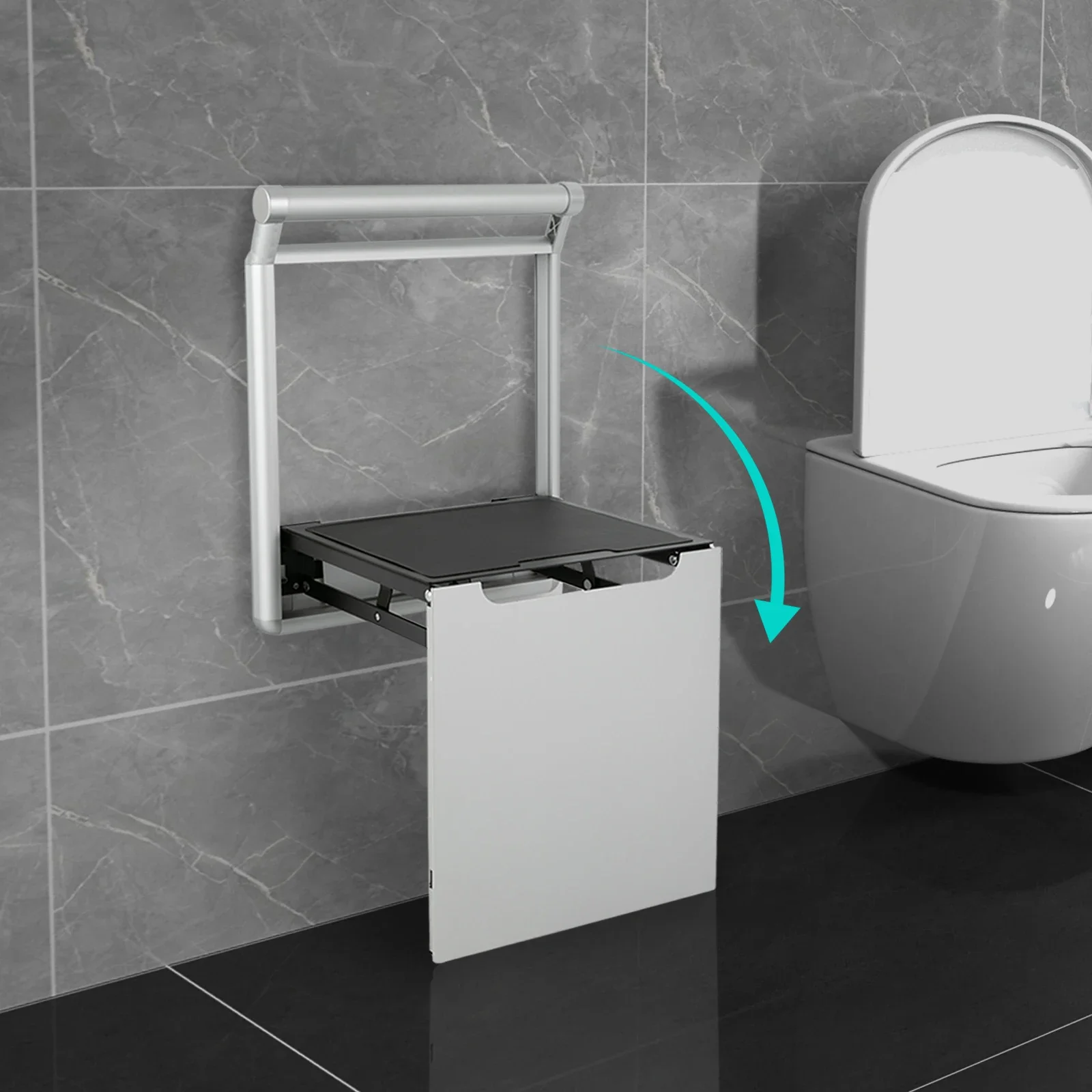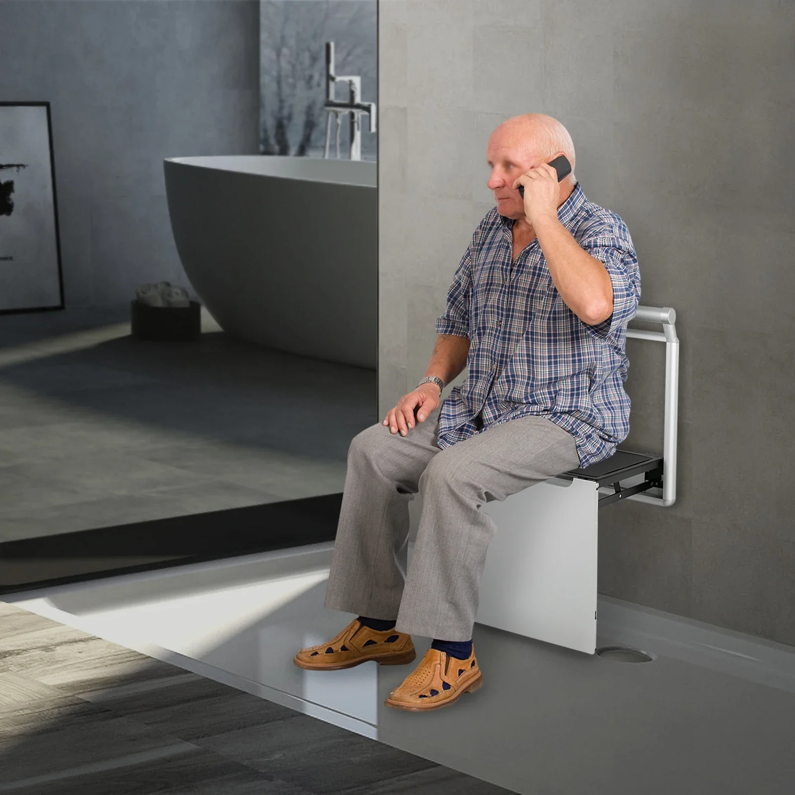 Folding Bathroom Stool, Wall-Mounted Shower Seat for Senior, Elderly, Pregnant, Disabled, Load 440.92 lbs Chic Home Furniture