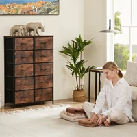 JHK Bedside Table For Bedroom With 10 Fabric Drawers Wardrobe Steel Frame Closet For Storage Cabinet Living Room Of Furniture