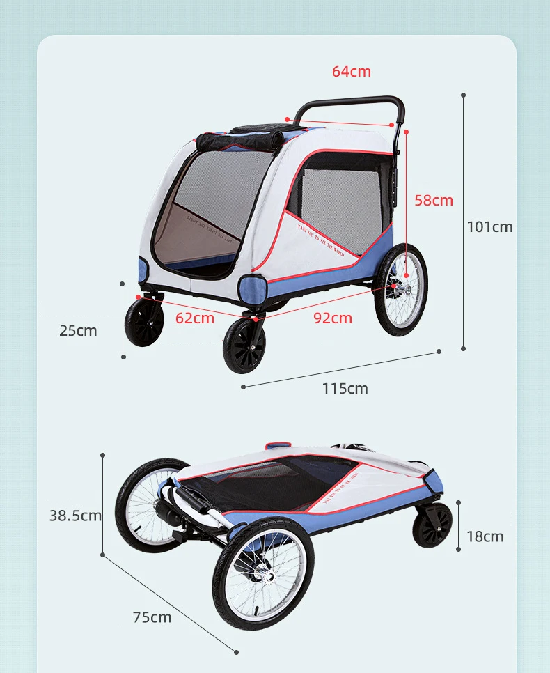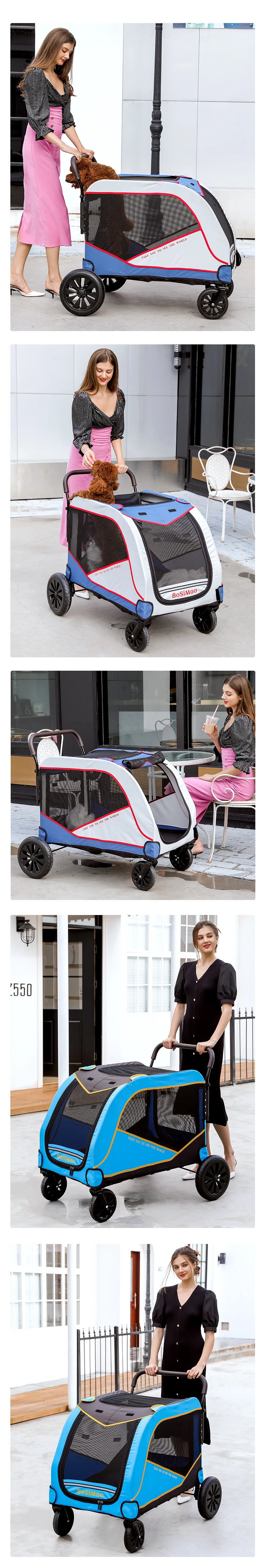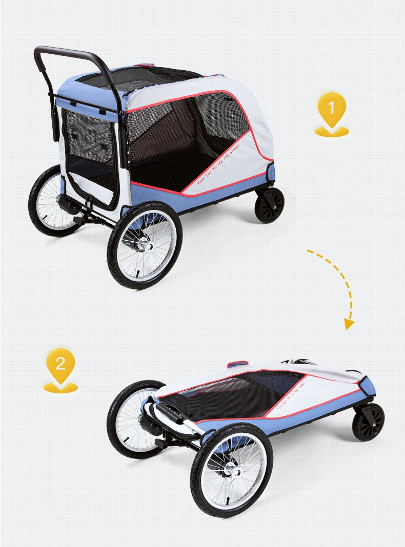 Dog Stroller Ultra-large 4 Wheels Pet Jogger Wagon Foldable Cart Travel Trolley Outdoor Animal Carrier Load Up To 55kg