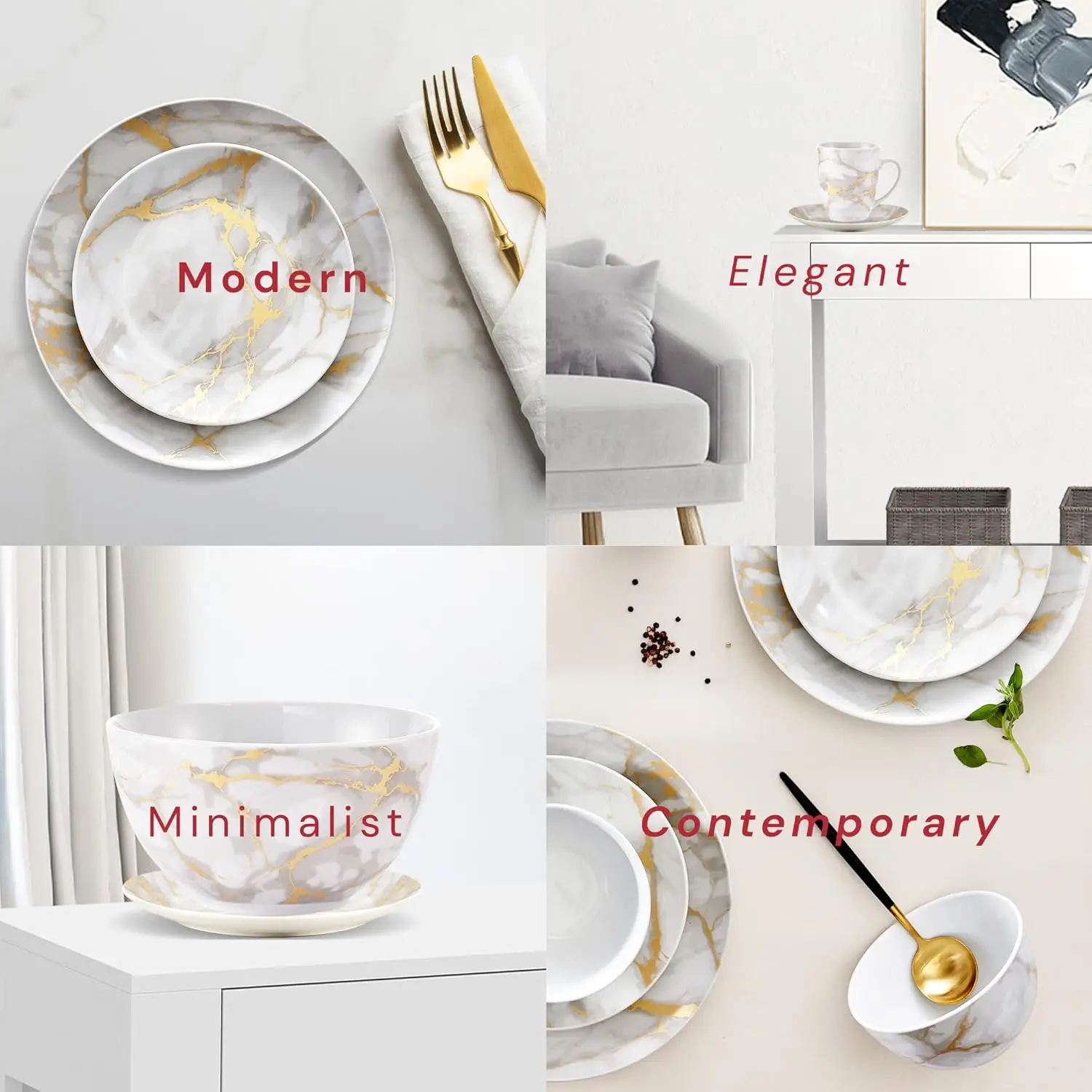 Marble Plates and Bowls Sets, Modern Kitchen 16-Piece Dinnerware Sets