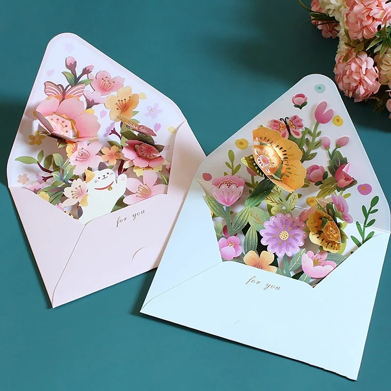 4. Unique creativity: Compared with traditional plane greeting cards, the unique creativity of three-dimensional flower greeting cards can attract people’s attention and make your blessing stand out from many greeting cards.