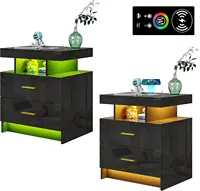 Smart Side Bed Table With 2 Drawer 16 LED Lights Nightstands Modern Furniture Home Cabinet Storage Cabinet Storage USB Charging