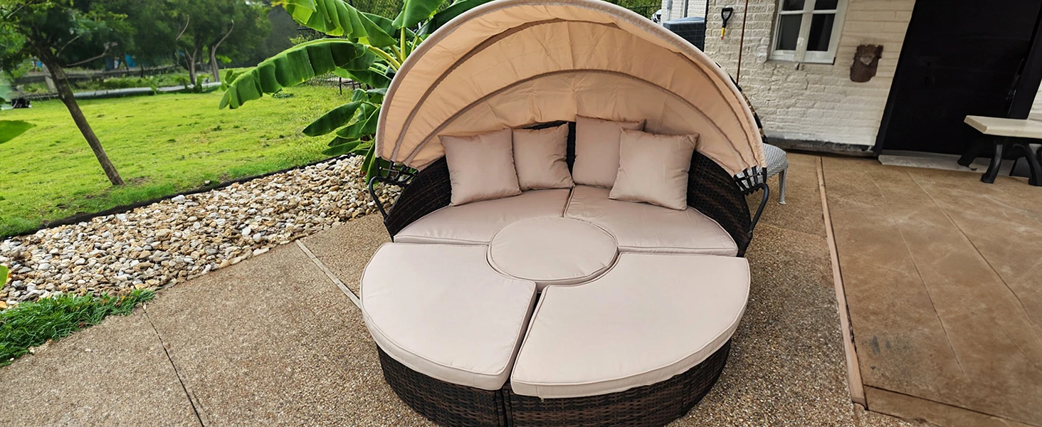 - RETRACTABLE CANOPY – Each outdoor daybed comes with thick cushions with removable covers and a canopy that provides adjustable light-blocking comfort.