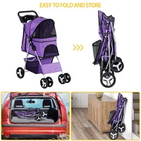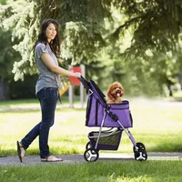 Pet Stroller for Dogs & Cats w/ 4 Wheels Pet Travel Carrier Dog Stroller Purple