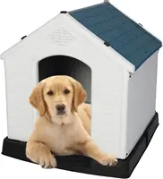 Plastic Outdoor Dog House for Pet Weatherproof Kennel Small to Large Size,Blue & White (L-35.5″ L x 37.5″ W x 39”H)