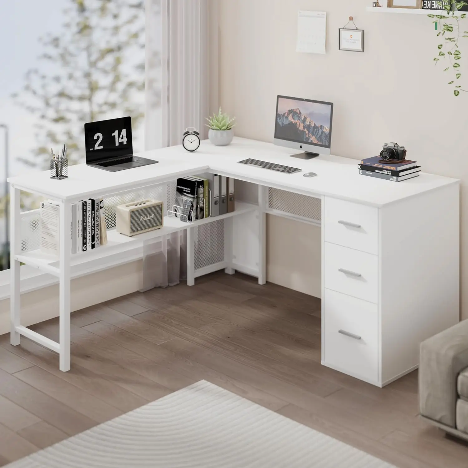 - Increased Work Efficiency: Reversible White L Shaped Computer Desk create a multifunctional work area, allowing you to switch between different activities more easily and improving work efficiency. For example, you can use one area for computer work and another area for handwritten notes or file organization, thereby completing tasks more effectively.