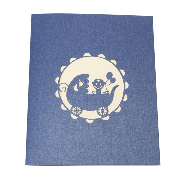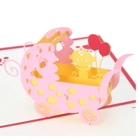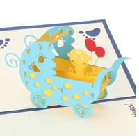 S-home New 3D Baby Carriages Greeting Card Pop Up Paper Cut Postcard Birthday Party Gift MAR30