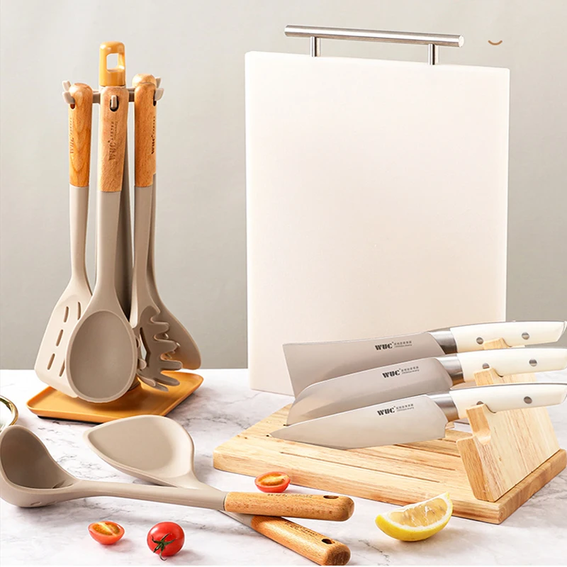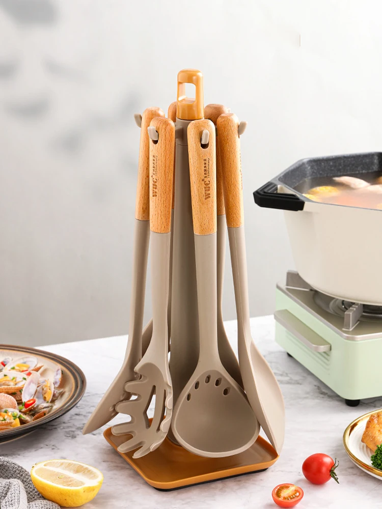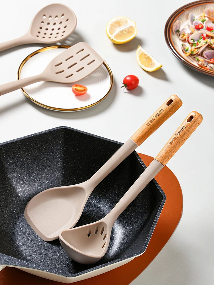 Silicone Kitchenware Cooking Utensils Non-stick Cookware Turner Spatula Spoon Slotted  with Wooden Handle Kitchen Cooking Tools