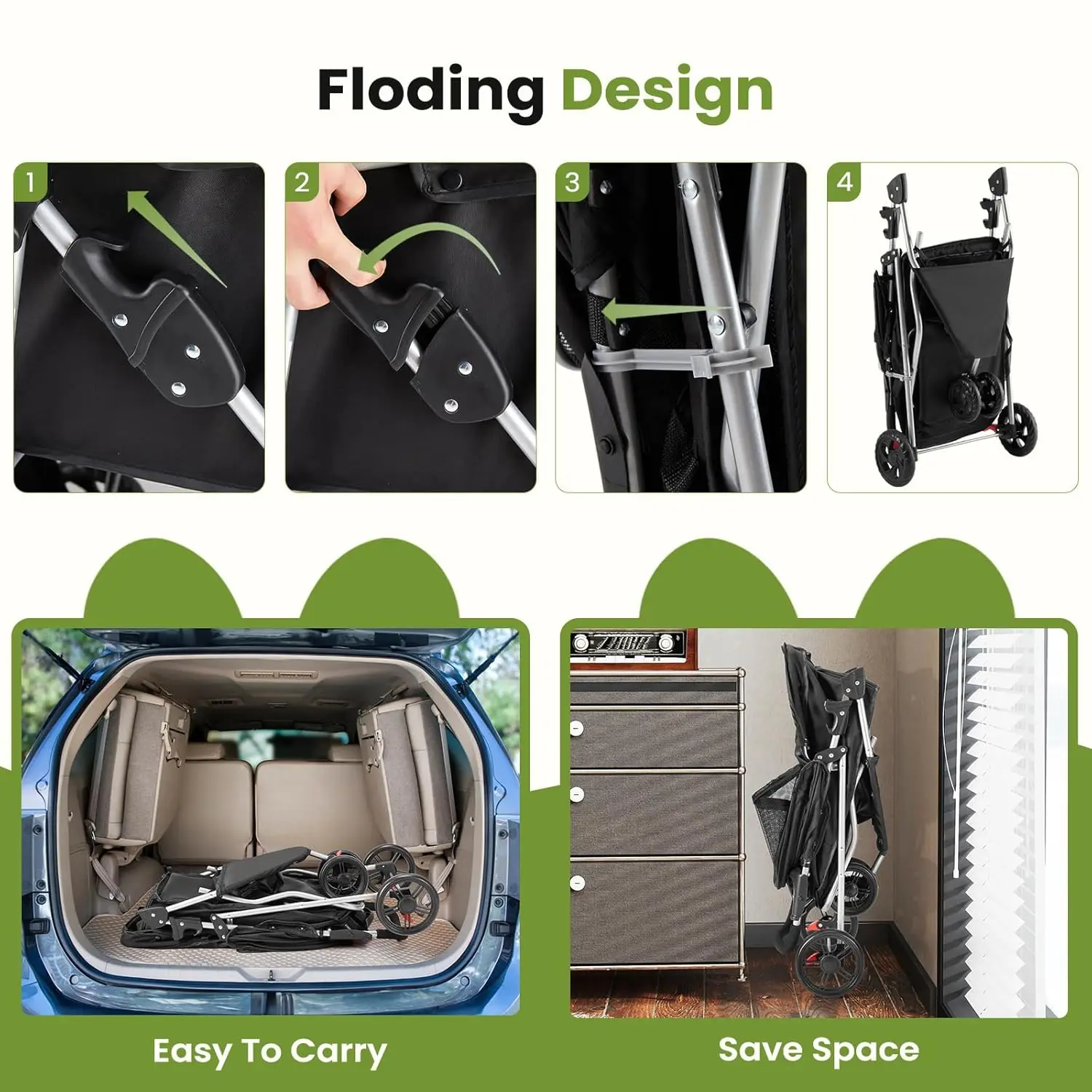 Small Pet Stroller, Lightweight & Foldable, Comfortable Ride for Dogs & Cats, Black, Easy to Transport