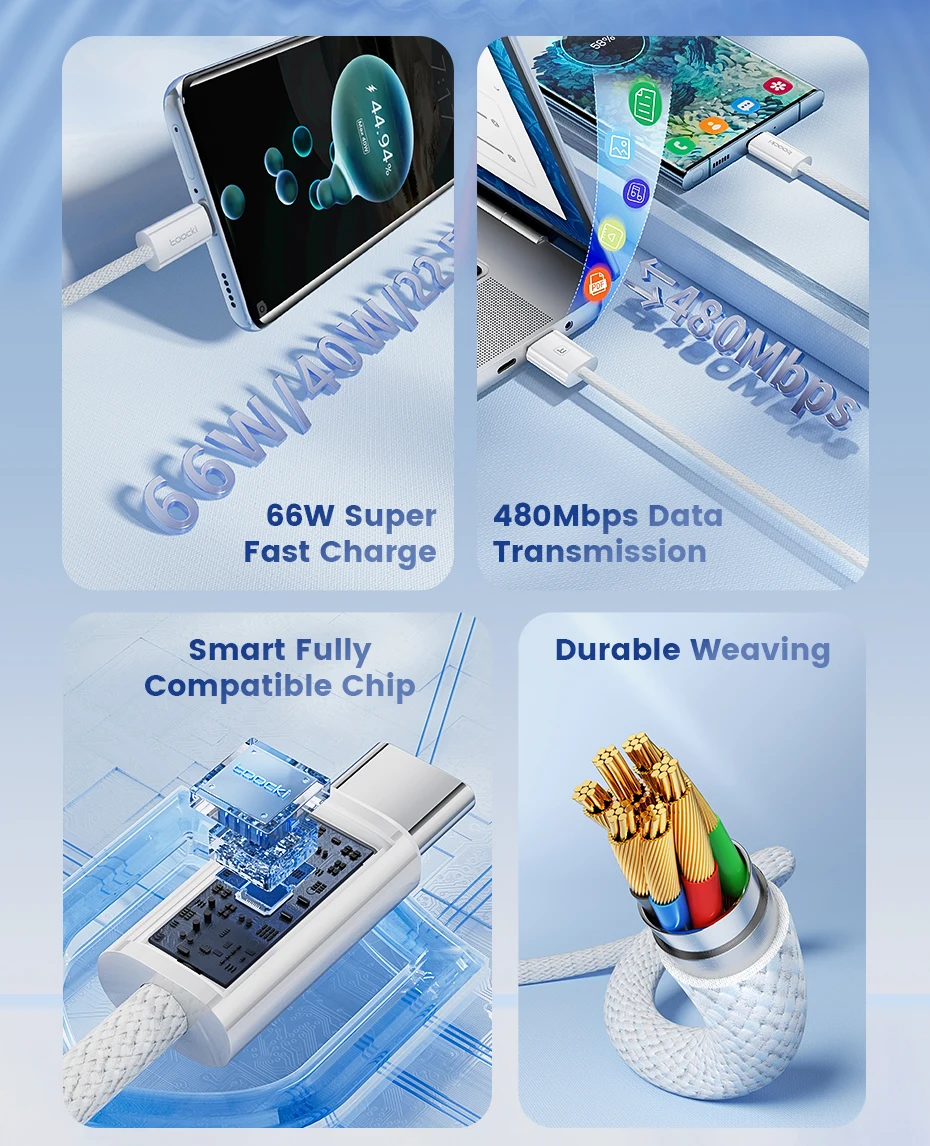 toocki 6A USB C Cable for Huawei P60 P50 Mate40 Honor Xiaomi Samsung Realme POCO X3 100W Fast Charging Type C Cable Data Wire