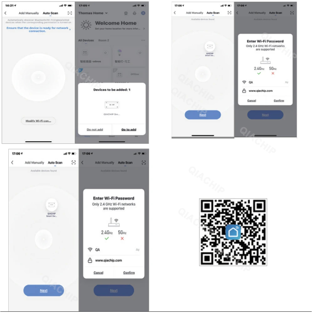 to enter the device addition page, and then select “Auto Scan” (please turn on the Bluetooth function of the phone before performing this operation) to start searching for nearby devices to be added. After discovering the device to be added , The icon and name of the device will appear on the APP page or a prompt page
