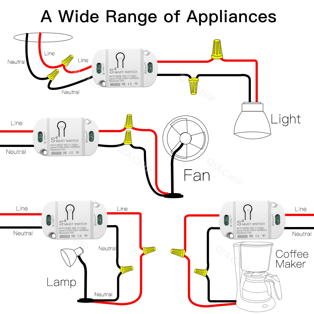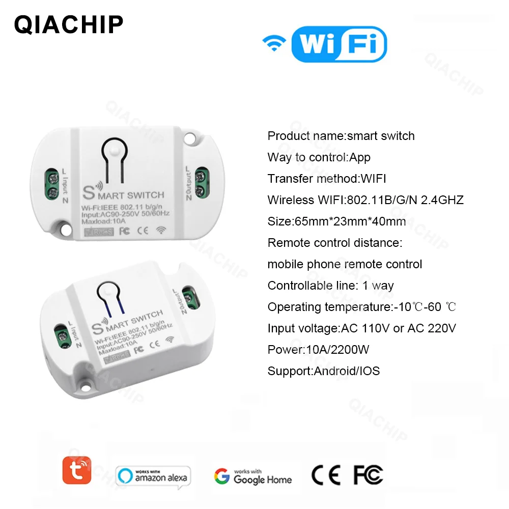 Tuya WiFi Smart Switch AC 220V 110V Wireless Controller Universal Breaker Timer Smart Life Work with LED Light Switch Alexa