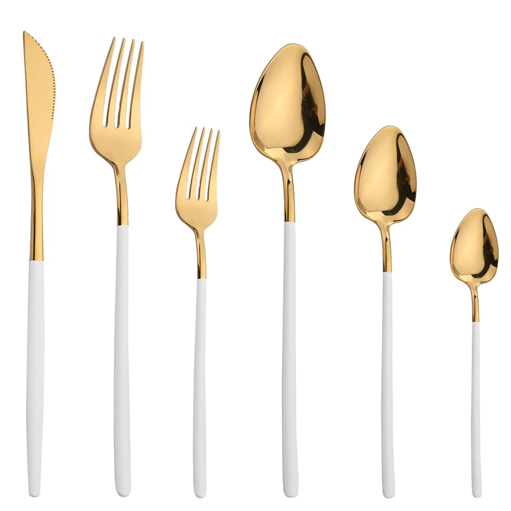Be the first to review “White Gold Dinnerware Set 18/10 Stainless Steel Flatware Knife Dessert Fork Spoon Tableware Cutlery Set Kitchen Silverware” Cancel reply