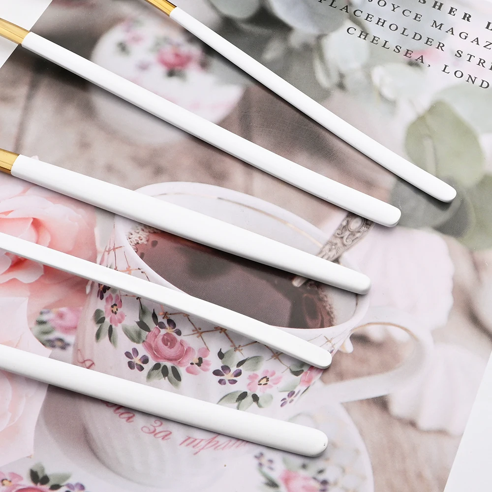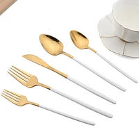 White Gold Dinnerware Set 18/10 Stainless Steel Flatware Knife Dessert Fork Spoon Tableware Cutlery Set Kitchen Silverware