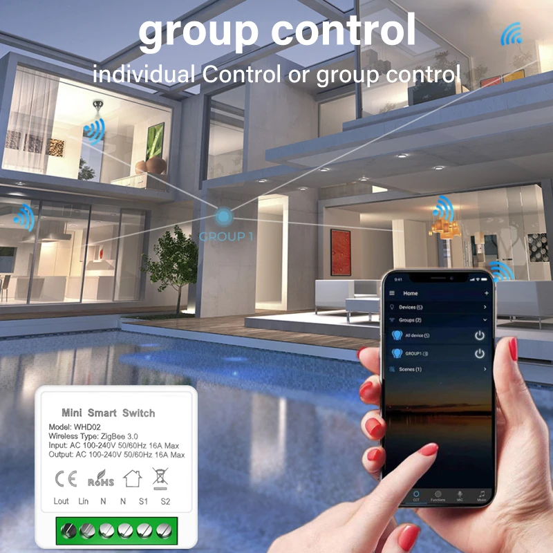 6.Create smart scenes to trigger groups of Smart Home devices on/off via tapping on your phone.