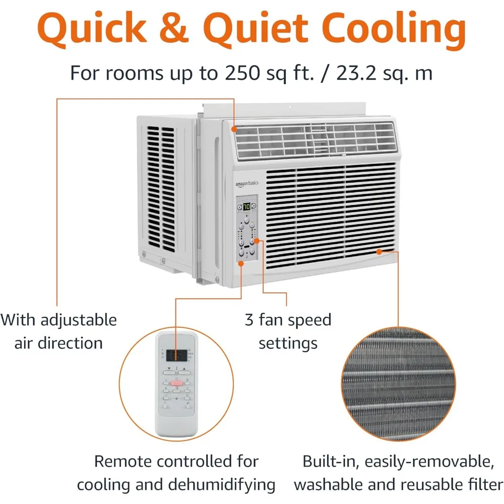 - COOLS AND DEHUMIDIFIES: The 6000 BTU window air conditioner effectively cools and dehumidifies rooms up to 250 sq. ft., providing comfort in compact spaces with standard ceilings
