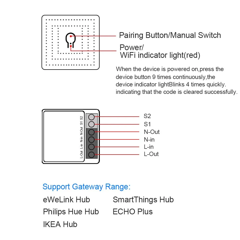 Zigbee Mini Smart Wifi Switch Wireless DIY Light Switches 16A Smart Home Control Works with Ewelink SmartThings Alexa